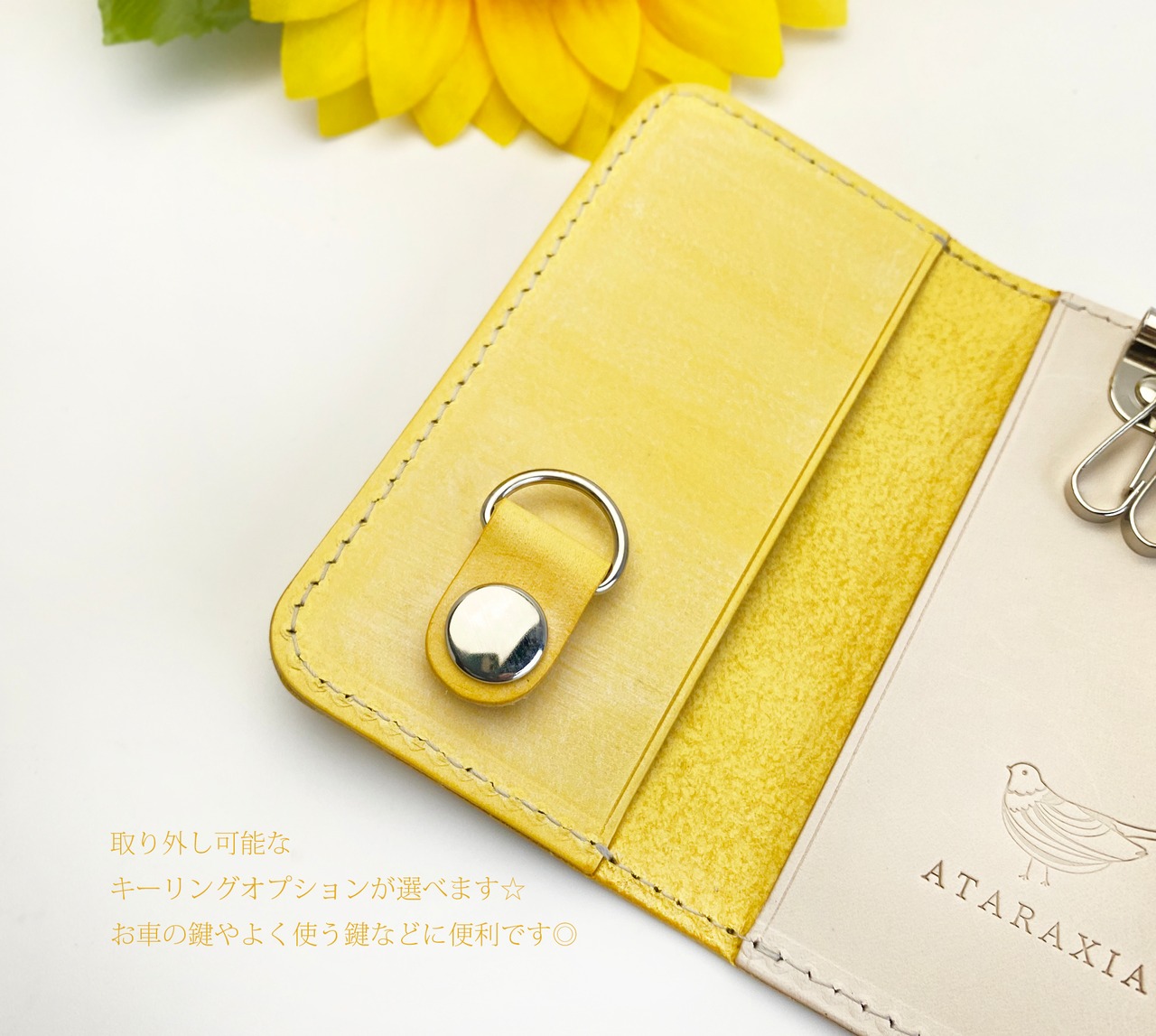 ファスナーポケット付きキーケース イエロー (アリゾナ使用) 名入れ対応☆選べる金具色☆キーリングオプション有り
